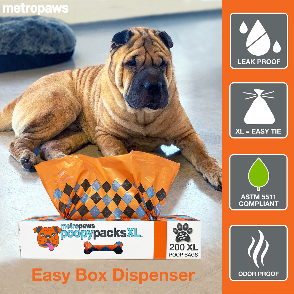 Poopy Packs XL™ are the LARGEST dog waste bags on the market. Because sometimes, size matters! These bags come in four chic and exclusive designs. They're designer, durable, and degradable.