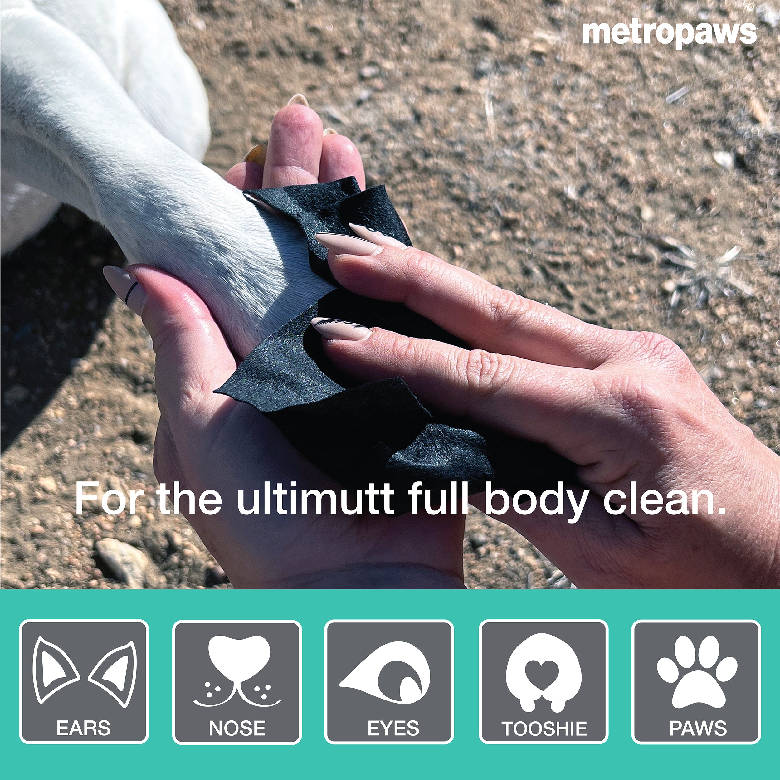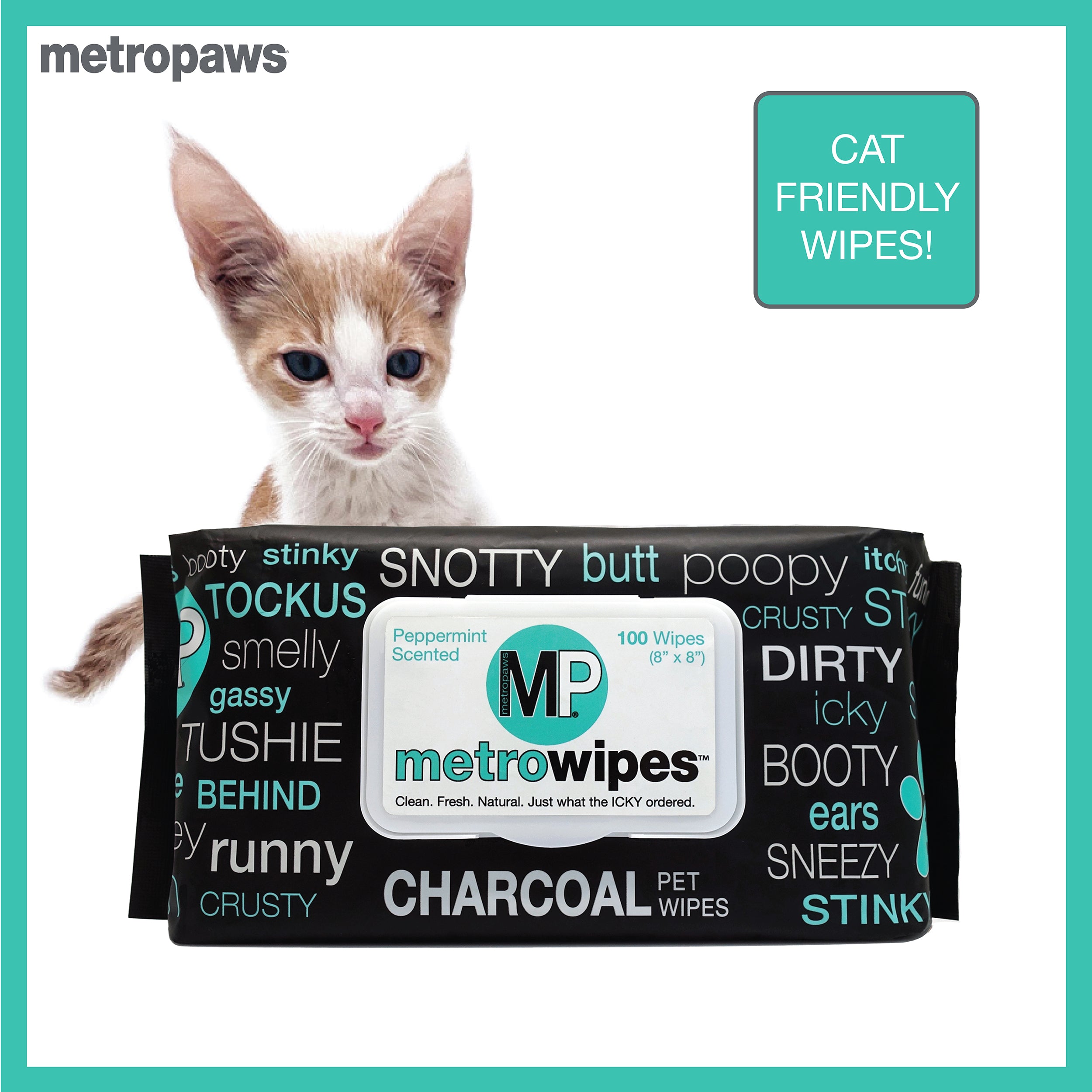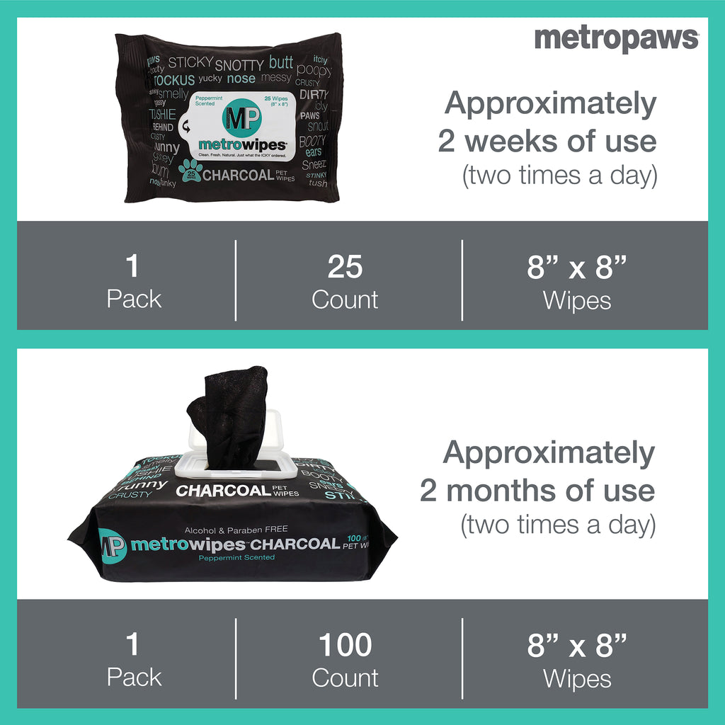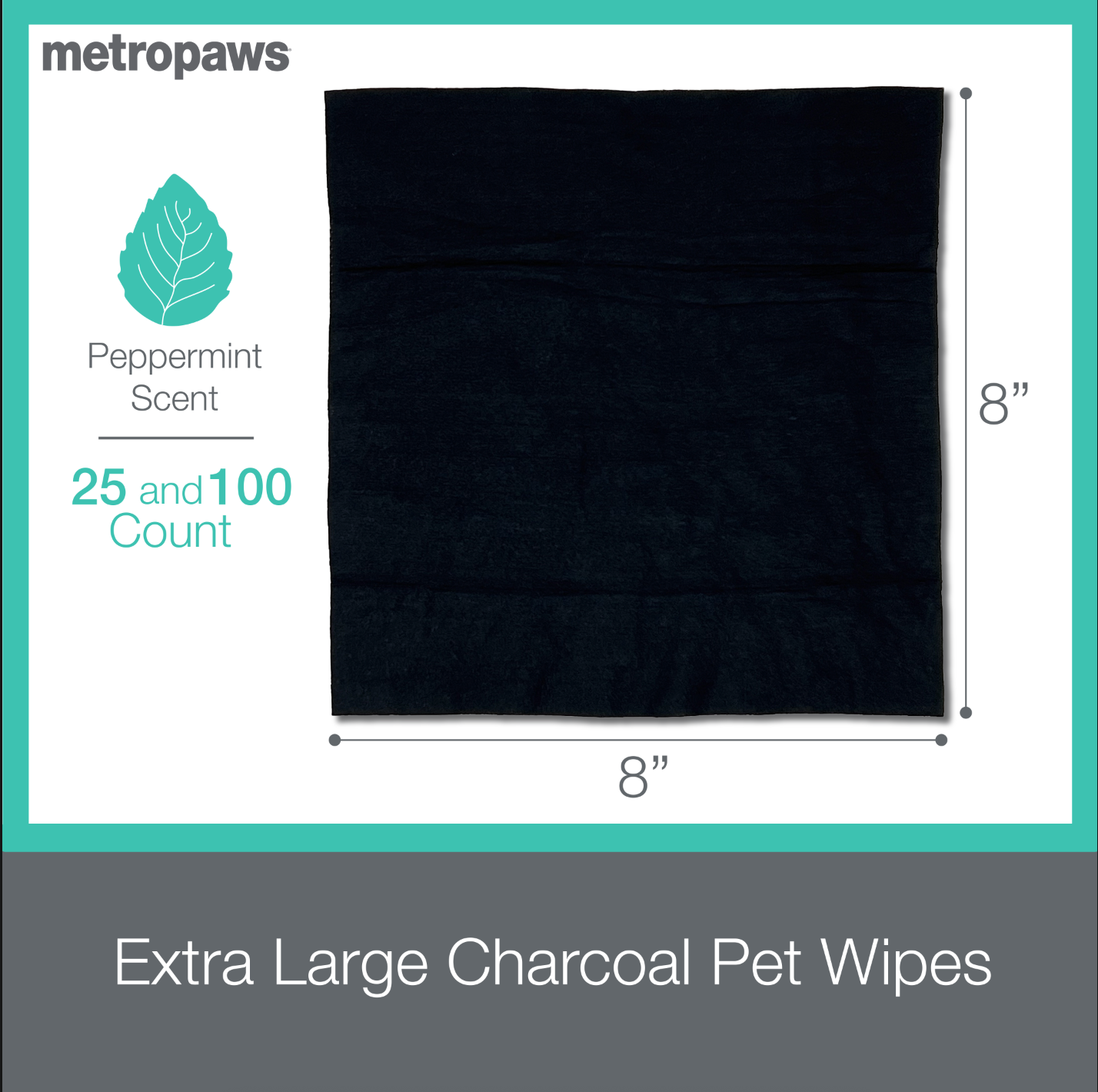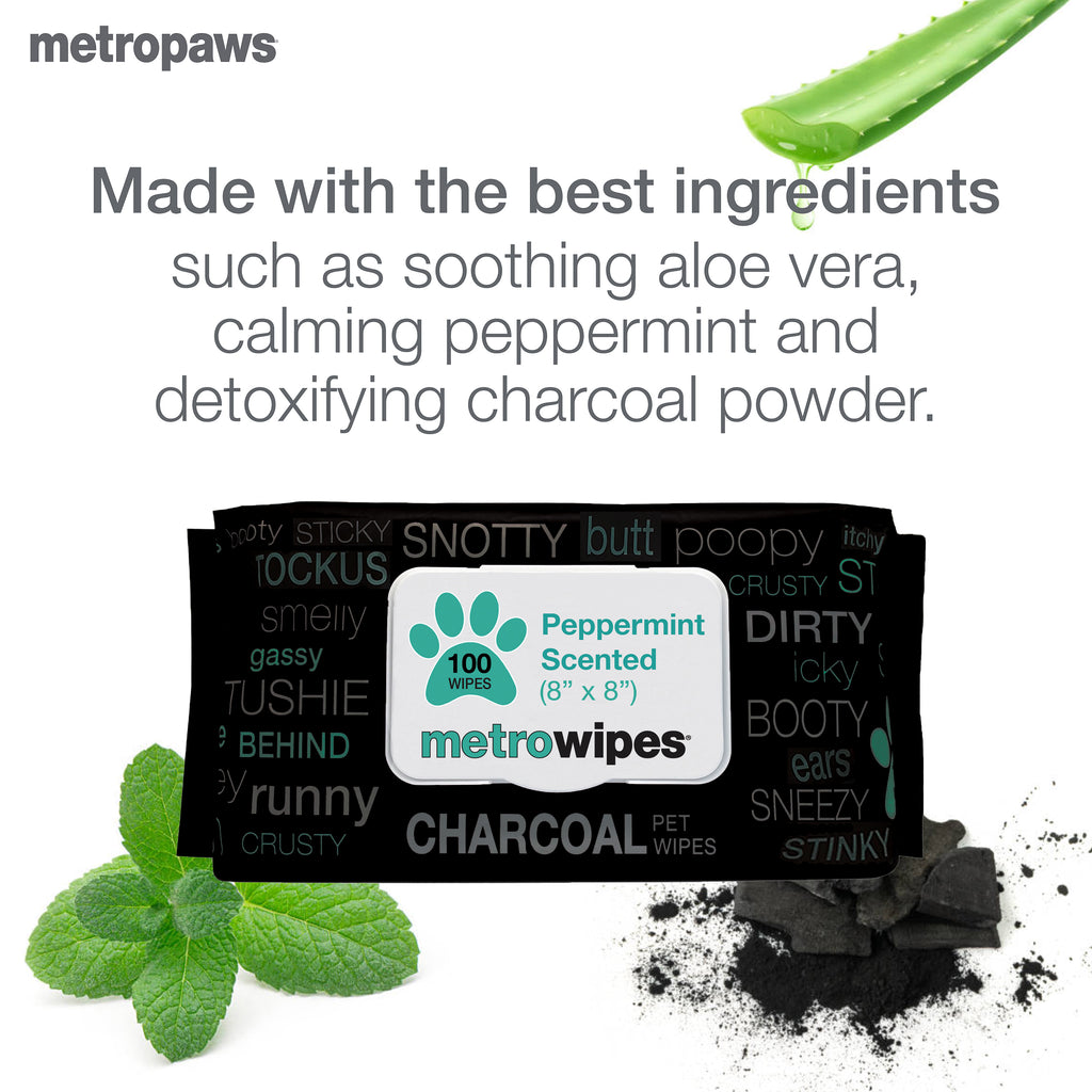 Metro Paws® Pet Wipes Charcoal Peppermint are the ONLY activated charcoal grooming wipes on the market! These wipes are great for your pup's tushie, paws, face, ears, and anywhere else that needs cleaning!